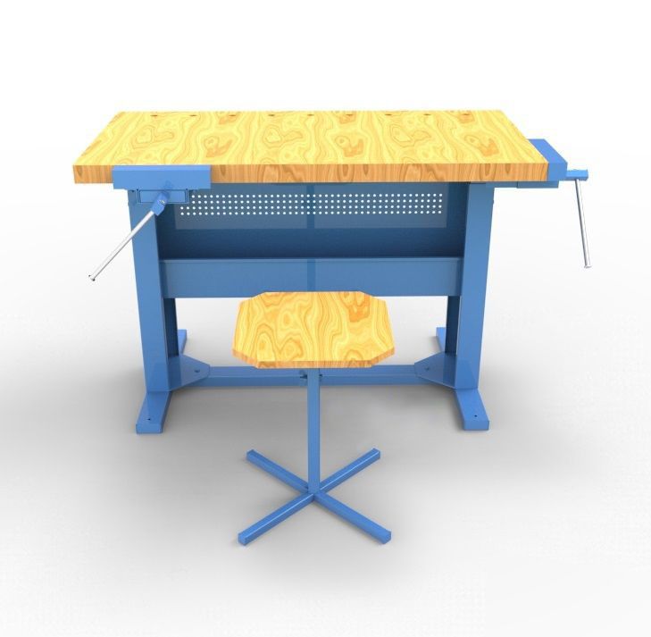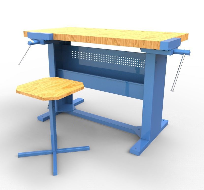 Основание и защитный экран поставляются в синем цвете. Стол используется учащимися 4-11 классов для сборочных, столярных, монтажных и других видов работ.