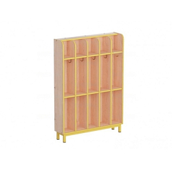 С каждой стороны вешалки размещается по 5 ячеек. Каждая ячейка состоит из полки, верхней части для полотенец для лица и нижней - для полотенец для ног. Каждая часть имеет по крючку для полотенец.