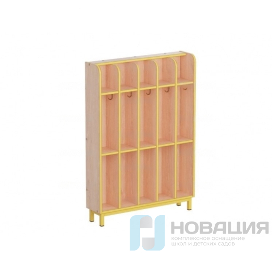 Состоит из пяти секций. Каждая секция состоит из трех частей: верхняя предназначена для стаканов, средняя - для полотенец для лица, нижняя - для полотенец для ног. Средняя и нижняя части имеют по крючку для полотенец.