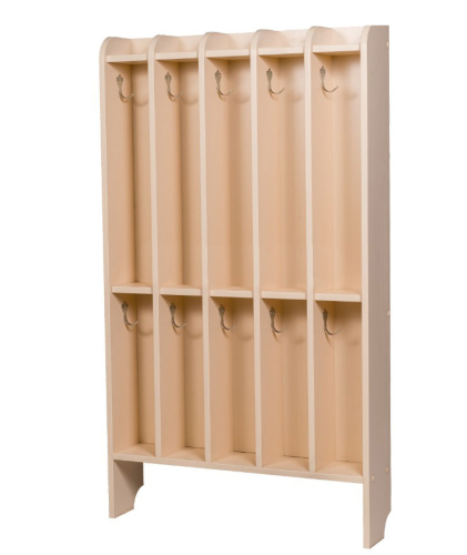Двухъярусная вешалка для полотенец размещается в туалетных комнатах ДОУ. В 5-ти секциях внизу и вверху устанавливаются металлические крючки, на них можно повесить 10 полотенец.