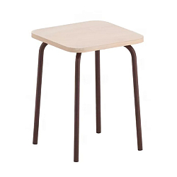 Сварной каркас окрашен стойкой полимерно-порошковой краской, на свободных концах труб размещены полимерные заглушки. Помимо крючков для одежды, на вешалке есть полка для головных уборов.