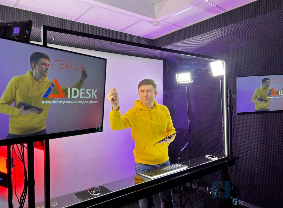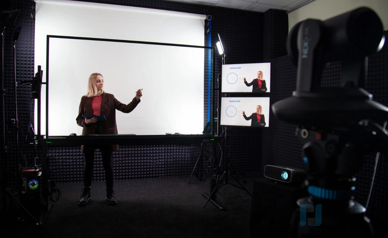 Студия подходит для проведения уроков и лекций, а также записи видеоматериалов, развития ораторских способностей и развитию навыка выступлений. Позволяет проводить уроки и презентации в режиме онлайн. Данный формат видеостудии дает возможность получить готовый ролик с минимальным монтажом сразу после завершения записи, а также взаимодействовать с элементами презентации в реальном времени, включая графику, анимации и веб-содержимое, что позволяет сделать урок информативнее и привлечет полное внимание слушателя.