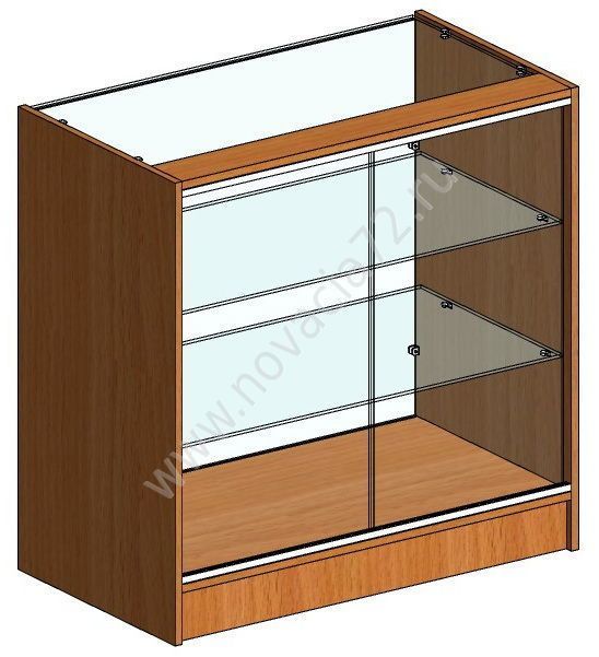 Высота застекленной части витрины 804 мм, корпус сборный. Спереди 2 прозрачные раздвижные дверцы без замка. 2 съемные полки из стекла, глубиной 200 мм и 300 мм, выдержат распределенный вес до 7 кг.