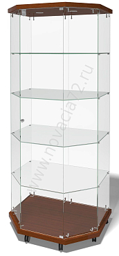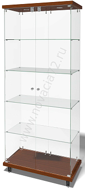 Пенал с фризом оснащен стеклянными полками и дверцей с замком, а так же точечным светильником. Используется стекло марки М1. Фриз и основание выполнены из ЛДСП.