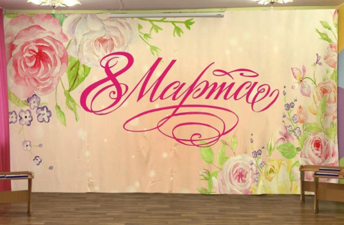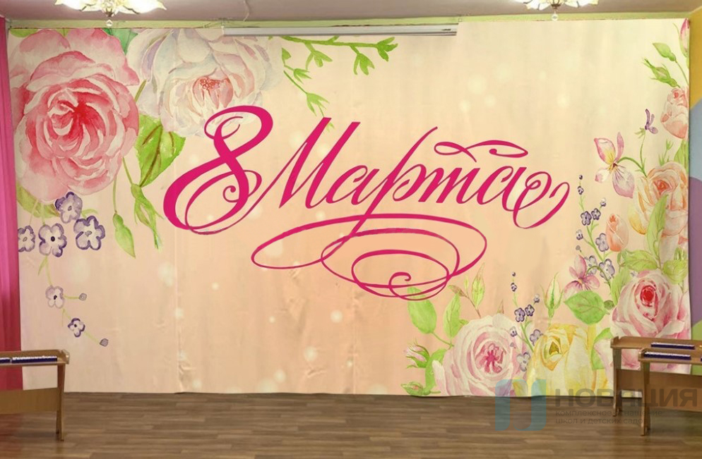 Предназначен для оформления сцены при проведении праздников и спектаклей, посвященных празднику 8 марта. Для крепления в комплекте предусмотрена шторная лента.