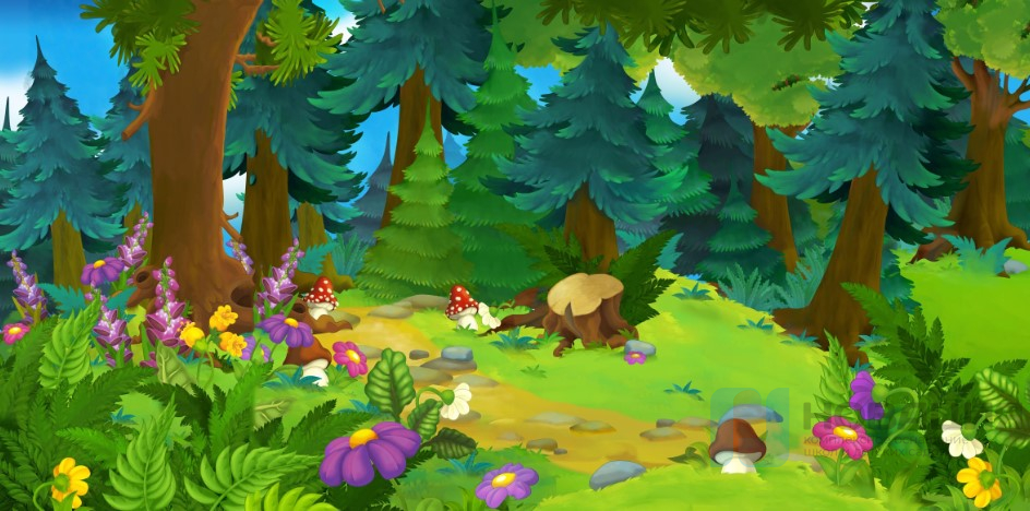 Занавес с изображением леса состоит из четырех полос шириной по 1500 мм. Универсальный размер подходит для большинства сцен.