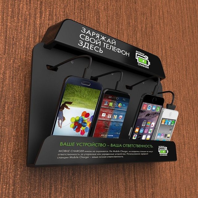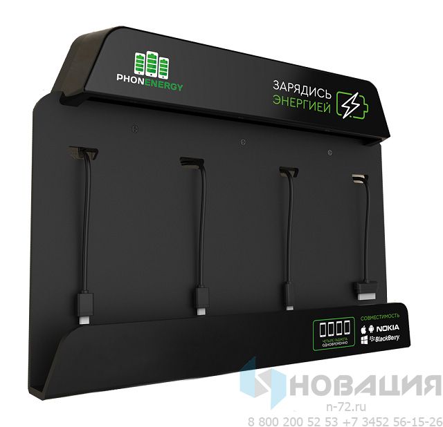Станция со сменными USB-кабелями используется для подзарядки электронных устройств. Конструкция монтируется к стене. В карман помещается до 4-х гаджетов.