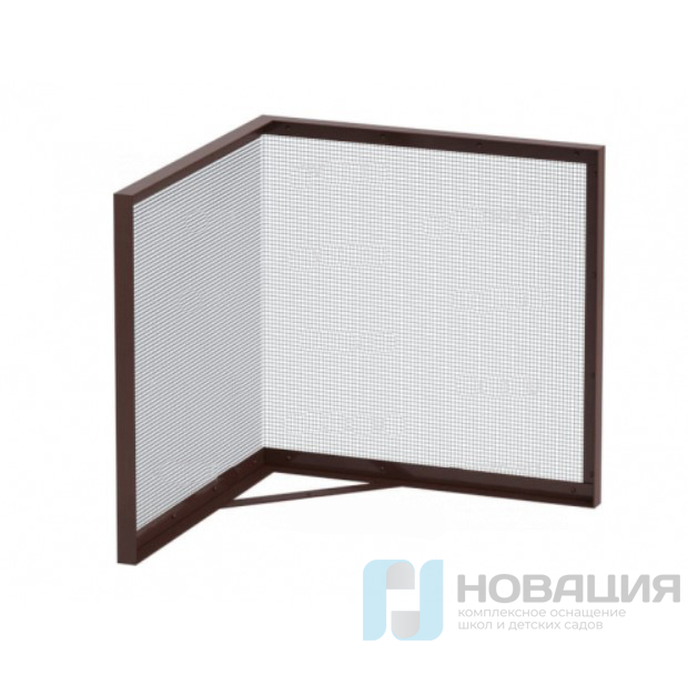 Экран размещается на сварном каркасе в форме буквы Г. Защитная сетка крепится к каркасу при помощи прижимов и заклепок.
