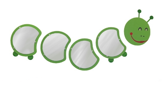 Детское зеркало состоит из 5-ти частей. Первая выполнена в форме головы гусеницы, остальные изображают ее туловище. Все части оснащены зеркальными поверхностями.