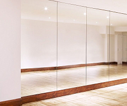 Сборно-разборный каркас черного цвета выполнен из труб 25х25х1,5 мм. Соединения болтовые. Торцы зеркал обработаны полированной еврокромкой. Опоры выдерживают нагрузки до 45 кг. При одностороннем исполнении наклонные перекладины расположены позади корпуса. Между полом и полотном расстояние 100 мм.