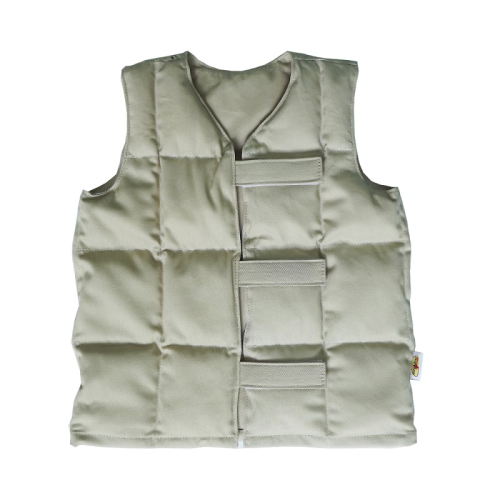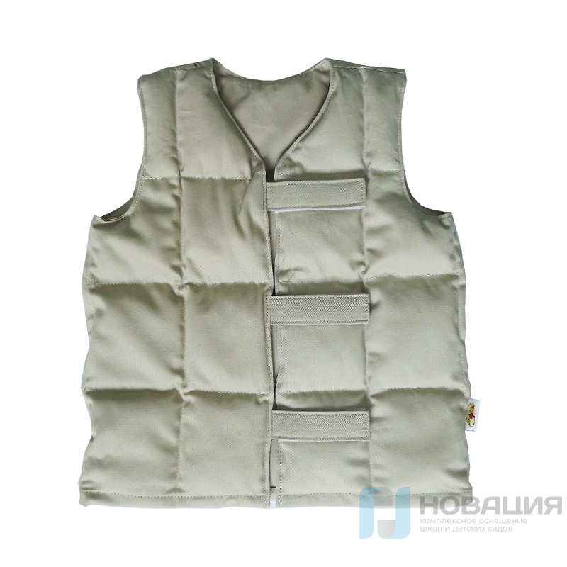 Утяжеленные изделия предназначены для усиления проприоцептивной обратной связи от мышц, связок и суставов при восстановлении функций восприятия своего тела у людей с расстройствами проприоцертивных функций. В реабилитационном утяжеленном жилете важно равномерное распределение наполнителя по всему жилету, благодаря которому оказывается глубокое давление на тело и стимуляция проприоцептивной обратной связи.