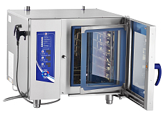 Инжекторный пароконвектомат предназначен для приготовления горячих и других блюд посредством обработки паром и нагретым воздухом. Встроена система автоматической подачи воды и пара. Предусмотрен механический тип управления.