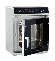 Материал изготовления — высококачественная нержавеющая сталь. Скругленные углы рабочей камеры обеспечивают ее легкое обслуживание. Приготовление может осуществляться как в программном, так и в ручном режимах. 4 уровня. Электронная панель управления, 99 программ, по 4 этапа в каждой. Устанавливается на шкаф расстоечный ШРТ-8 (Abat) или самостоятельно.