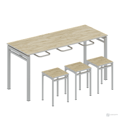 Обеденный стол для школы — устойчивая мебель с противоударной кромкой, металлокаркас которой окрашен износостойкой порошковой краской. Под столешницей предусмотрены металлические кронштейны для подвешивания табуретов.