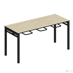 Столешница изготовлена из ДСП и облицована пластиковым покрытием. Торцы обрамлены ПВХ-кромкой. Под столешницей размещаются металлические кронштейны для подвешивания сидячих мест.