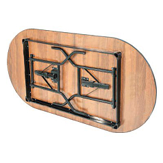 Стол на распорках подходит для общепита. ЛДСП с обеих сторон оклеена пленкой (имитация рисунка ценной породы дерева), не теряет свой цвет под действием внешних факторов. Складные ножки с защитными колпачками прижимаются к овальной столешнице.