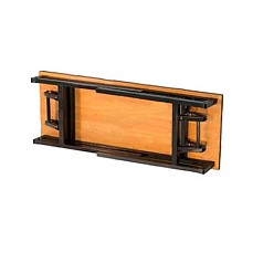 Обеденный стол с пружинным механизмом штабелируется. Рама из металлического профиля после эксплуатации складывается в одну плоскость с ЛДСП.