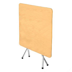 Мебель для зоны приема пищи оснащена складными крестообразными опорами. Квадратная столешница после использования принимает вертикальное положение.