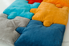 Матрас состоит из 6-ти отдельных разноцветных элементов, которые выполнены в форме деталей пазла. Части легко соединяются и разъединяются. Чехлы несъемные. Может использоваться как место для сидения или в качестве игрового элемента.