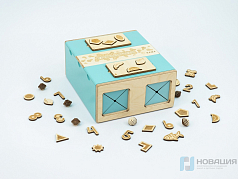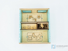 Площадки (66х66х10 мм) оснащены прорезями (8 мм) в форме букв или линий. Элементы можно переставлять, при этом рисунок не прерывается.