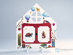 - Интерактивная настенная панель в виде теремка со ставнями, на которых нарисованы буквы и цифры (25 дюймов, Full HD, мультитач 10 касаний);