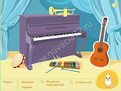 На занятиях ребенок учится чтению, счету и письму, тренирует внимание. Нужно следить за виртуальным метрономом, играть на электронном ксилофоне, повторять постукивание или нажимать кнопку по хлопку. Задания соответствуют ФГОС, есть сертификат.