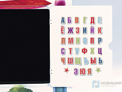 - Тактильный алфавит представлен пластиковыми фигурками в виде букв и планшетами из пены с отверстиями.
