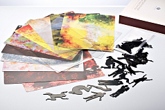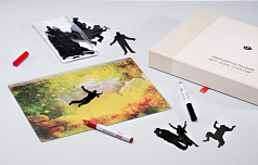 Комплектующие поставляются в коробке с магнитным клапаном. Набор фонов, силуэтов и фигур позволяет проводить творческие уроки, во время которых ребенок составляет картины.