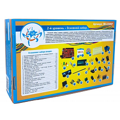 Использование 2-х наборов (базового и ресурсного) дает наиболее полное представление о кинематике и робототехнических конструкциях. Элементы поставляются в пластиковом боксе.