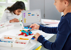 Набор для сборки управляемых моделей используется во время уроков робототехники в средней школе.