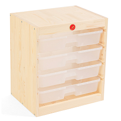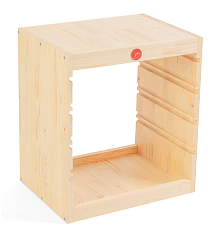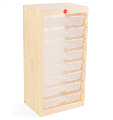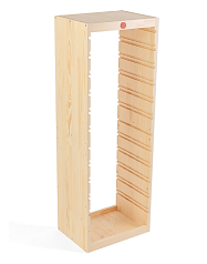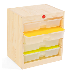 В зависимости от выбранных габаритов контейнеров, стеллаж может вместить игровые наборы, канцелярские принадлежности, книги, мягкие игрушки, детали конструкторов, дидактические материалы.