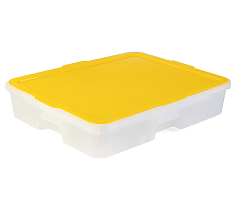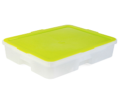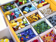 Каждый короб закрывается прозрачной крышкой. В нем можно хранить и даже мыть элементы DUPLO и LEGO: удобная емкость имеет на дне специальные отверстия.