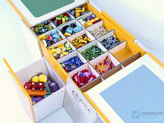 Размеры отсеков ориентированы на габариты конструкторов Lego. Предусмотрена специальная штора-роллета выполненная из пластика с автоматическим замком и двумя ключами в комплекте.