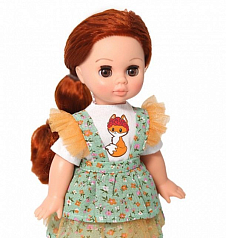 Кукла поставляется с комплектом одежды: футболка с термоаппликацией с изображением лисы, сарафан, трусы, туфли.
