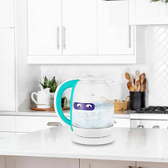Стильный чайник KITFORT КТ-6140-3 выполнен из сочетания стекла, пластика и нержавеющей стали. За счёт оригинального дизайна он идеально впишется в любой интерьер.