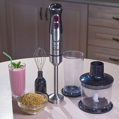 Блендер погружной VIXTER HBW-2165 мощностью 1200 Вт способен справиться с любыми задачами по измельчению, смешиванию, приготовление смузи и вбиванию, подходит для жидких и твердых продуктов.