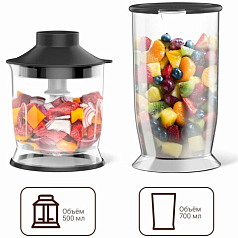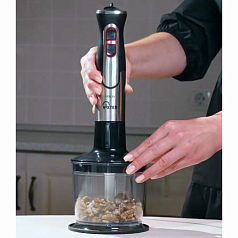 Погружной блендер SCARLETT SC-HB42F61 оснащён мощным мотором высокой мощности 1100 Вт, к нему прилагается мини-измельчитель, мерный стакан и венчик, с помощью которых можно измельчать продукты, готовить тесто, взбивать крем и выполнять другие задачи.