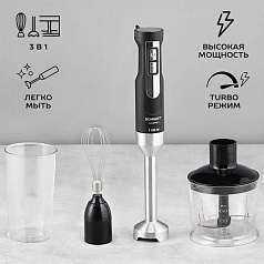 Блендер погружной SCARLETT SC-HB42F61, 1100Вт, 25 режимов, измельчитель, венчик, стакан, черный