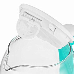 Чайник KITFORT КТ-6140-3, 1,7л, 2200Вт, закрытый нагревательный элемент, ТЕРМОРЕГУЛЯТОР, стекло, белый/бирюзовый