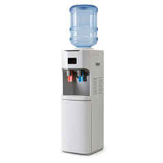 Стандартный напольный электронный кулер для воды VATTEN V09W бюджетного уровня выполнен из белого пластика, имеет шкафчик для хранения.