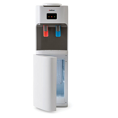 Кулер представлен в традиционном белом цвете. Особую элегантность и строгость данной модели придает вставка темно-серого цвета в зоне раздачи воды. Эта модель идеально подойдет к любому стилю офиса, благодаря своему оригинальному и стильному дизайну.