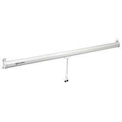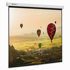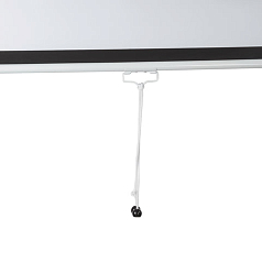 Ручной привод позволяет быстро и удобно регулировать положение экрана. В комплекте идет компактный многоразовый пузырьковый уровень, который поможет вам установить экран ровно и надежно на стене или потолке.