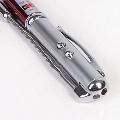 Лазерная указка 5 в 1: с точкой красного свечения, LED-фонарем, детектором купюр, стилусом для резистивных экранов и шариковой ручкой. Является эффективным средством для привлечения внимания аудитории к информации, отображенной на доске или экране.