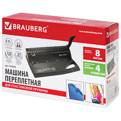 Переплетная машина для пластиковой пружины BRAUBERG B8, пробивает до 8 листов, сшивает до 125 листов, 530958