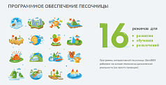 Набор состоит из резервуара и проекционной техники. В резервуар насыпается песок. Пользователь в группе или самостоятельно придает ему форму. Камера фиксирует изменения рельефа. Программа подбирает картинку со схожим природным рисунком и выводит ее на поверхность песочницы. Можно увидеть имитацию вулкана, бархана, водоема с рыбками, неба с птицами, поляны. Холмы, горы и тоннели из песка дополняют изображение ландшафта. Такие упражнения стимулируют фантазию и познавательный интерес.