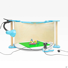 Основа для кукольной анимации представляет собой круглый манеж, который комплектуется задником и видеокамерой. Камера фиксируется на округлых перилах и может перемещаться по дуге. На круглую плоскость устанавливается фон и объекты съемки.