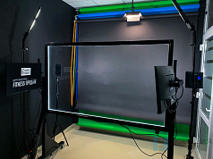 Студия с стеклянной доской диагональю в 75 дюймов предназначена для проведения онлайн-уроков и трансляций в формате FullHD. Доска регулируется по высоте имеет объем видеопамяти 4гб. В состав комплекта входит RGB LED подсветка стекла и LED подсветка спикера в диапазоне 4400-6200К для большего вовлечение в процесс урока.