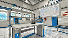 Занятия проходят в виртуальной лаборатории, в которой расположен стол с интерактивными объектами для сборки цепи, а также экран для инструкций, описаний задач и демонстрации результата решения.