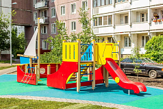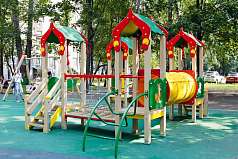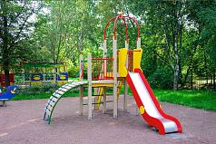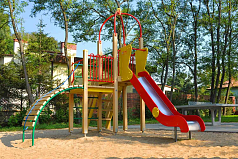 - Комплекс для детского досуга представляет собой площадку с безопасным подъемом и спуском. На скате горки предусмотрены участки старта, разгона и торможения. Ступени лестницы не скользят.