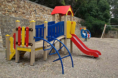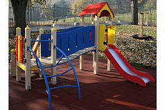Установка подходит для детских игр. Лазанье, катание с горки способствует укреплению мышц ног, рук, пресса.